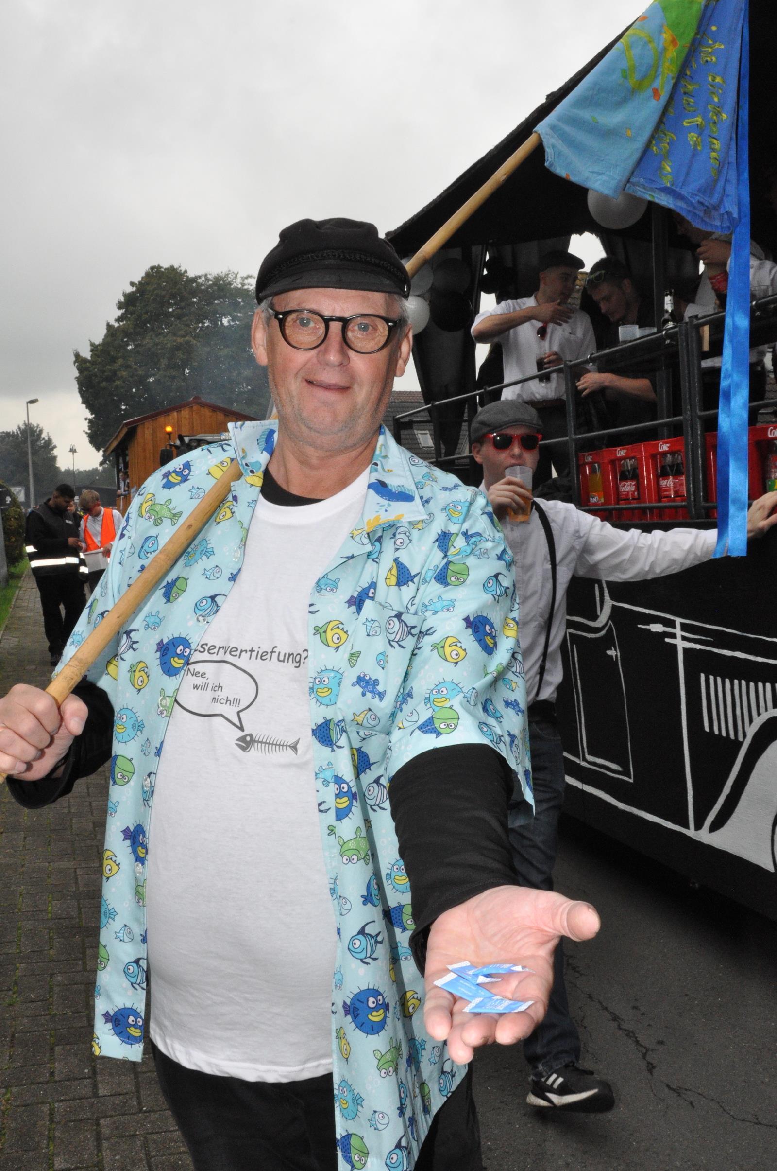 Albert Mumme vom Verein gegen die Weservertiefung verteilt kleine Tütchen mit Salz. Salz statt Kamellen. Was soll das? „Damit Ihr wisst, wie die Weser nach der Vertiefung schmeckt“, sagt er,